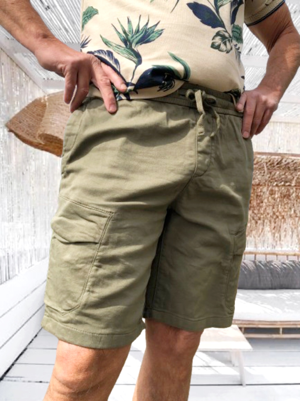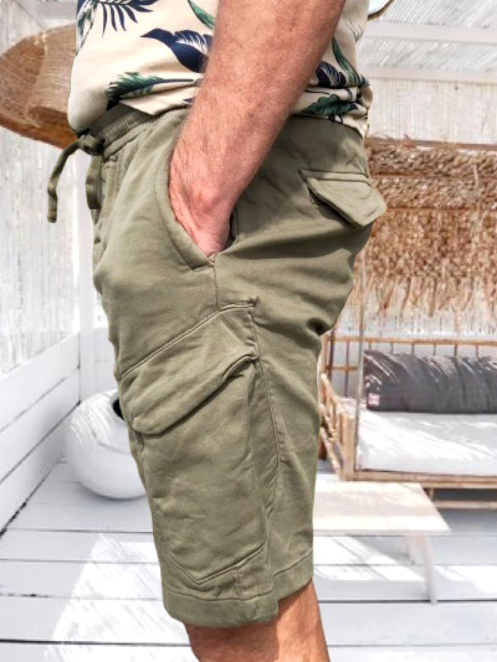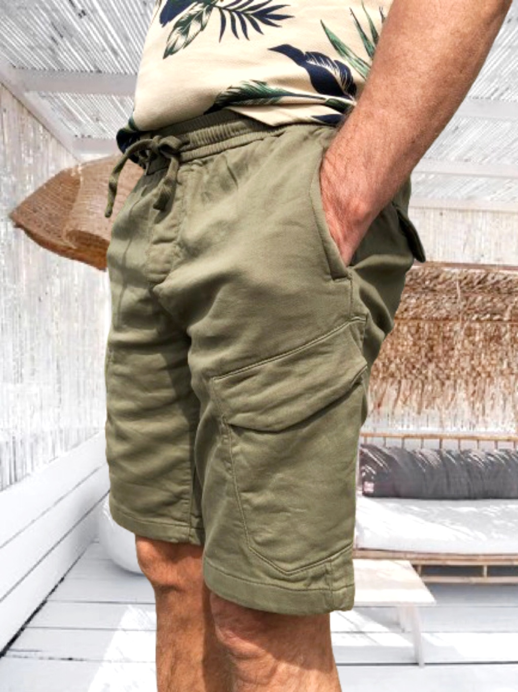 RAMON férfi PAMUT SHORT/BERMUDA gumis derékkal *army green*