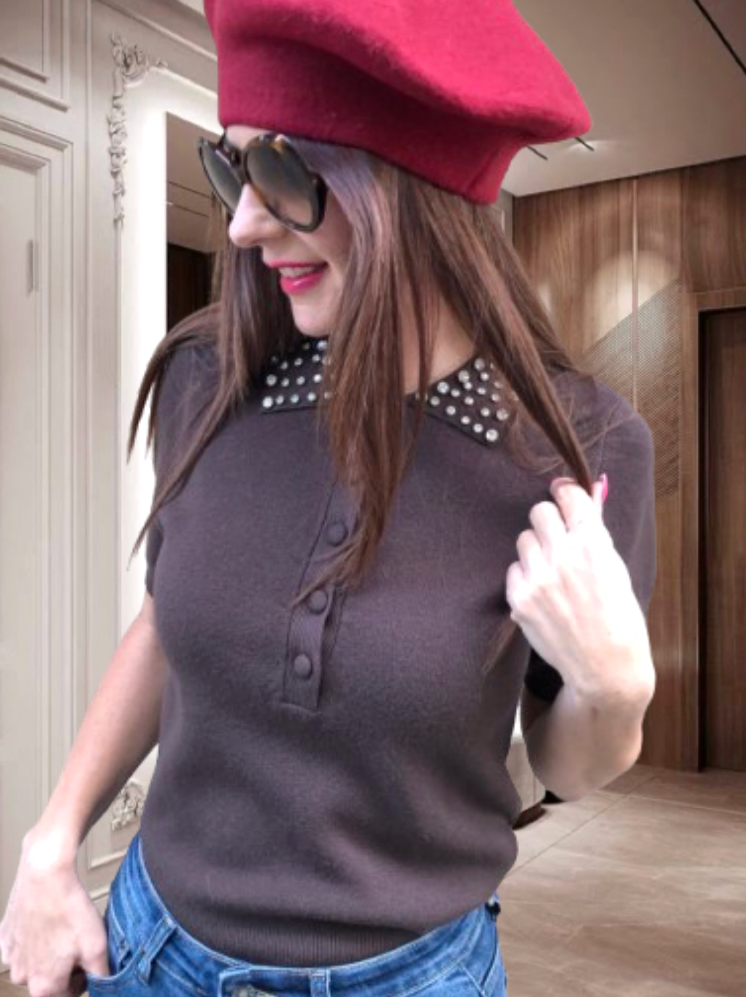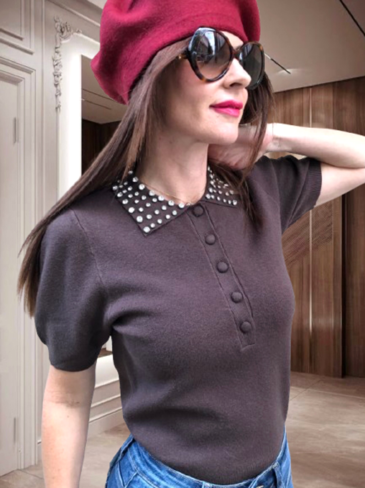 LETTI kötött,-galléros FELSŐ strasszal