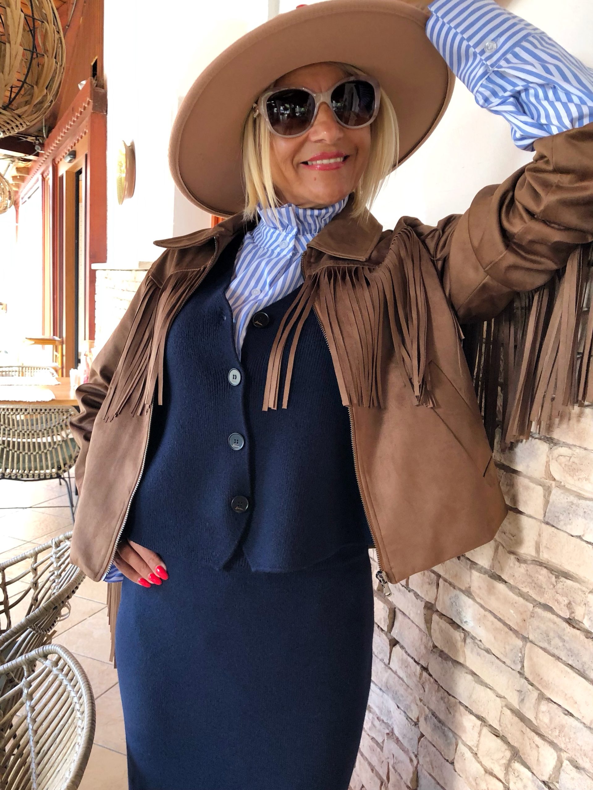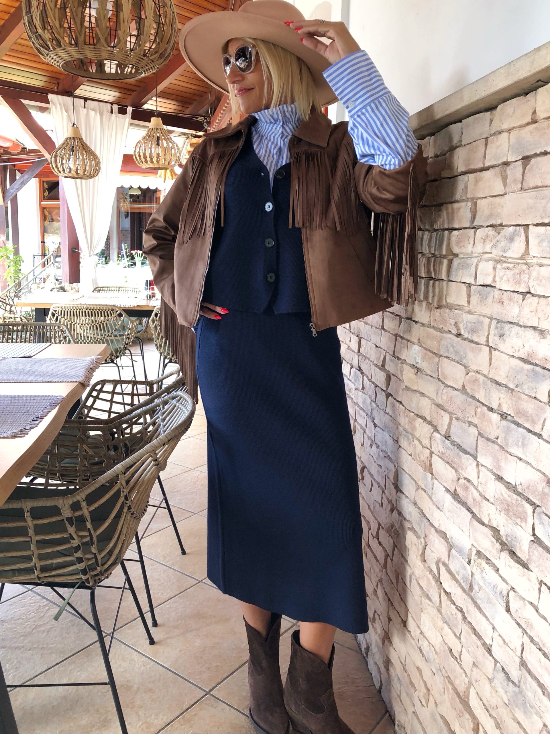 AMELIA KÖTÖTT SZETT (ceruza szoknya+mellény) *navy blu*